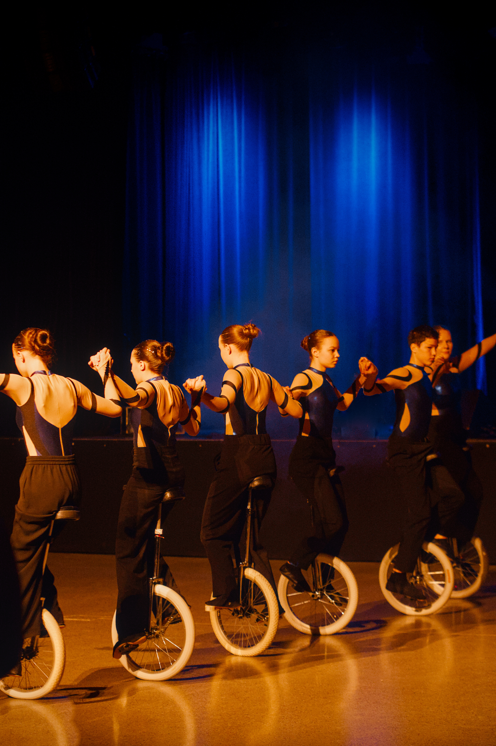 Neben Tanz, Akrobatik, Jonglage und Einrad werden auch weitere artistische Disziplinen, wie Trapez, Luftring, Vertikaltuch, Cyr-Ring und Chinese Pole trainiert.